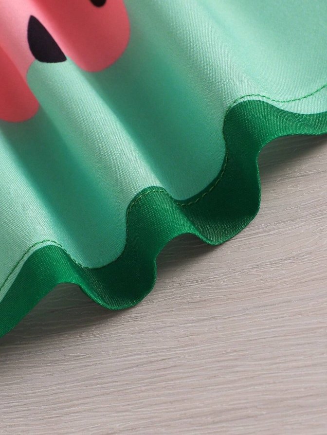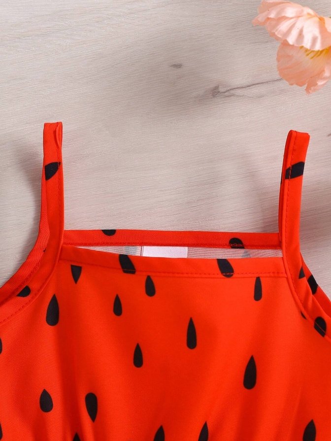 Baby Girl 2pcs Casual Style Watermelon Printed Strap Dress And Hat Set, Summer